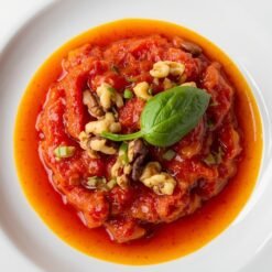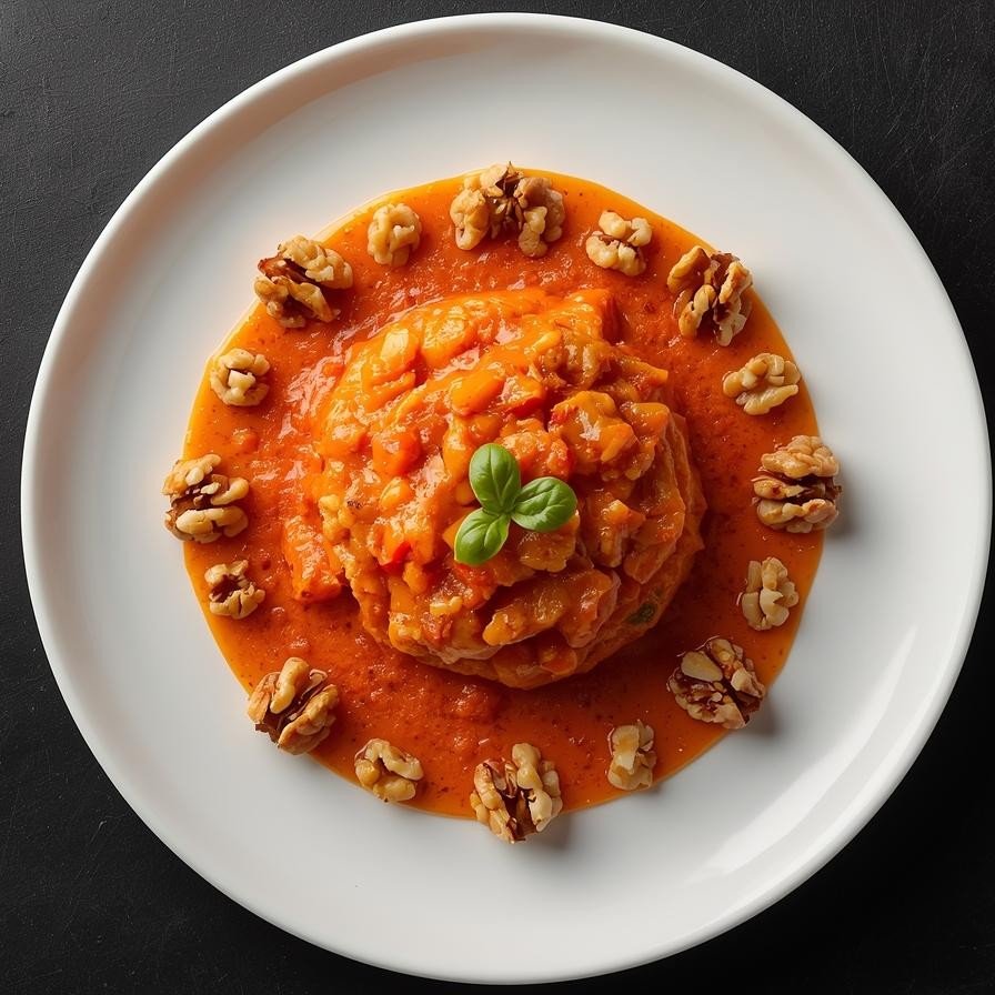Eine kräftige und schmackhafte Kombination aus gehackter Paprika, die in einer würzigen Marinade mit Walnüssen eingelegt wird. Perfekt für die, die den Geschmack von Paprika und Nüssen schätzen.