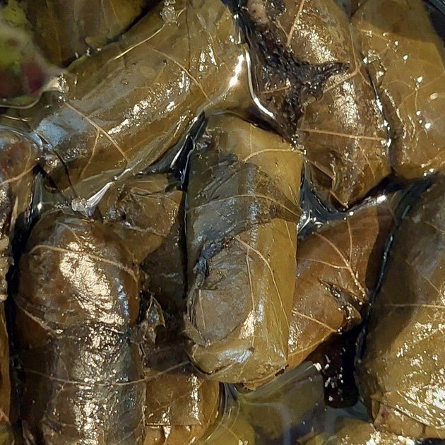Zutaten: Weinblätter, Reis, Zwiebeln, Kräuter, Gewürze, Olivenöl